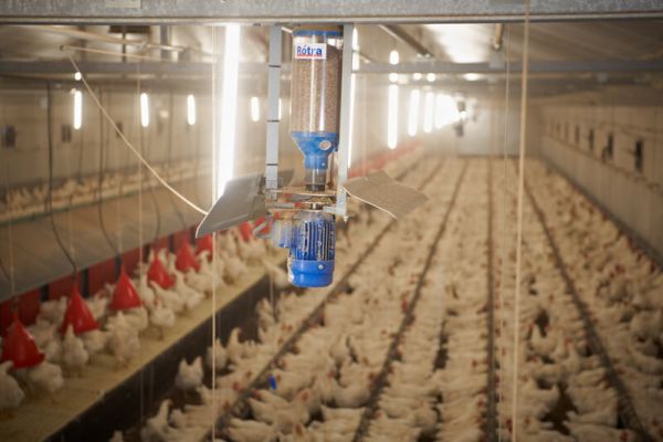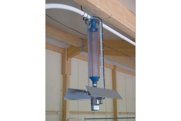 The wheat spreader helps you and distributes small amounts of feed several times a day in the scraping and bedding area of the poultry houses to promote the natural behavior of the animals. The increased well-being reduces negative behavior and there are fewer injuries. The wheat spreader is made of robust material with a rotating disc made of stainless steel and a galvanized steel frame.