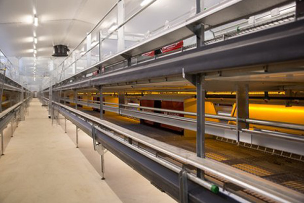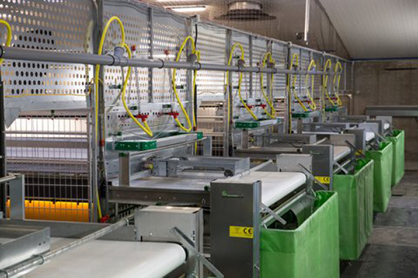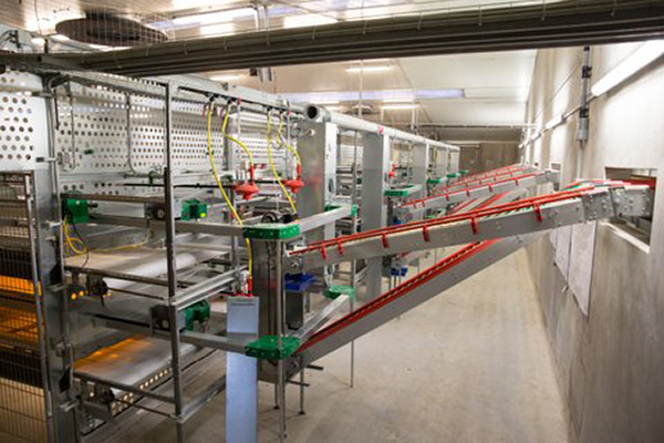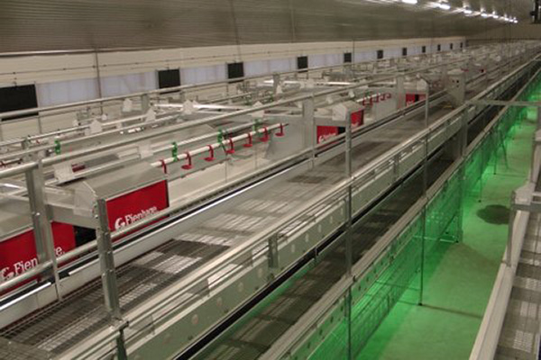 The design of the Fienhage Easy 100 aviary is constantly under review and its advantage is the central egg collection conveyor. In practice this means that it is never necessary to collect the eggs by hand. design of the nests has also been optimised to guarantee easy daily inspection of the animals.