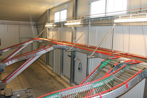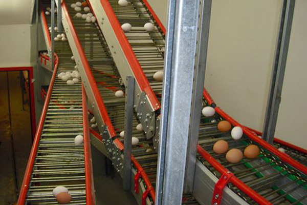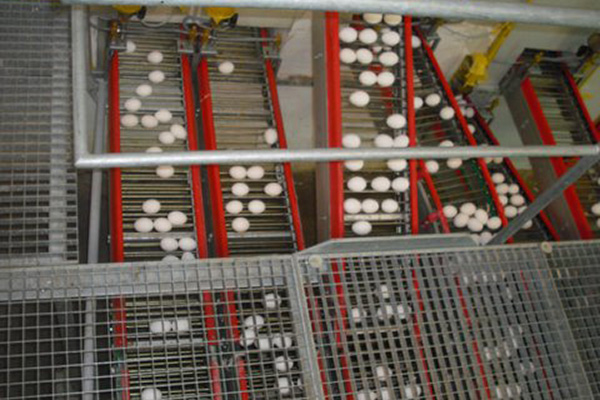 Cross collection of eggs brings the eggs by the shortest route to the farmpacker or the sorting machine. This process protects the eggs from contact with each other.