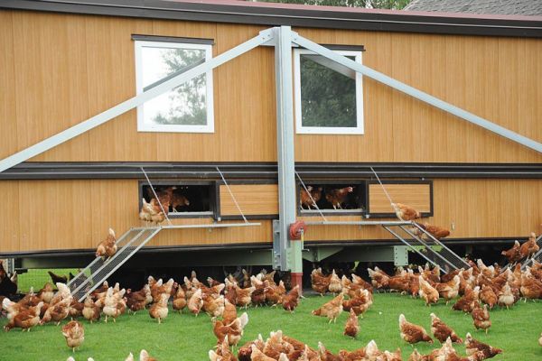 - the mobile barn is suitable both for free range egg production and for organic hen rearing